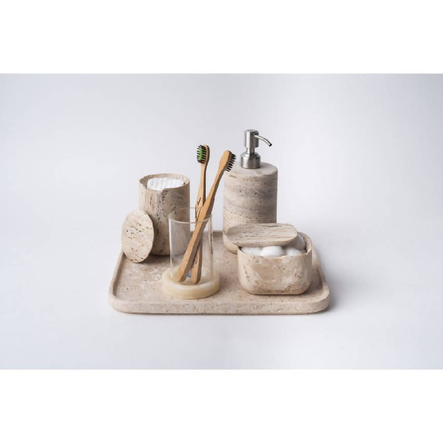The Square travertine container keeps different articles that you want like bath hats, q-tips, bath salts, bathtub soap pumps, and more. It will make a beautiful look about your bathroom, your dressing table, or any place you put it, creating a cozy atmosphere.