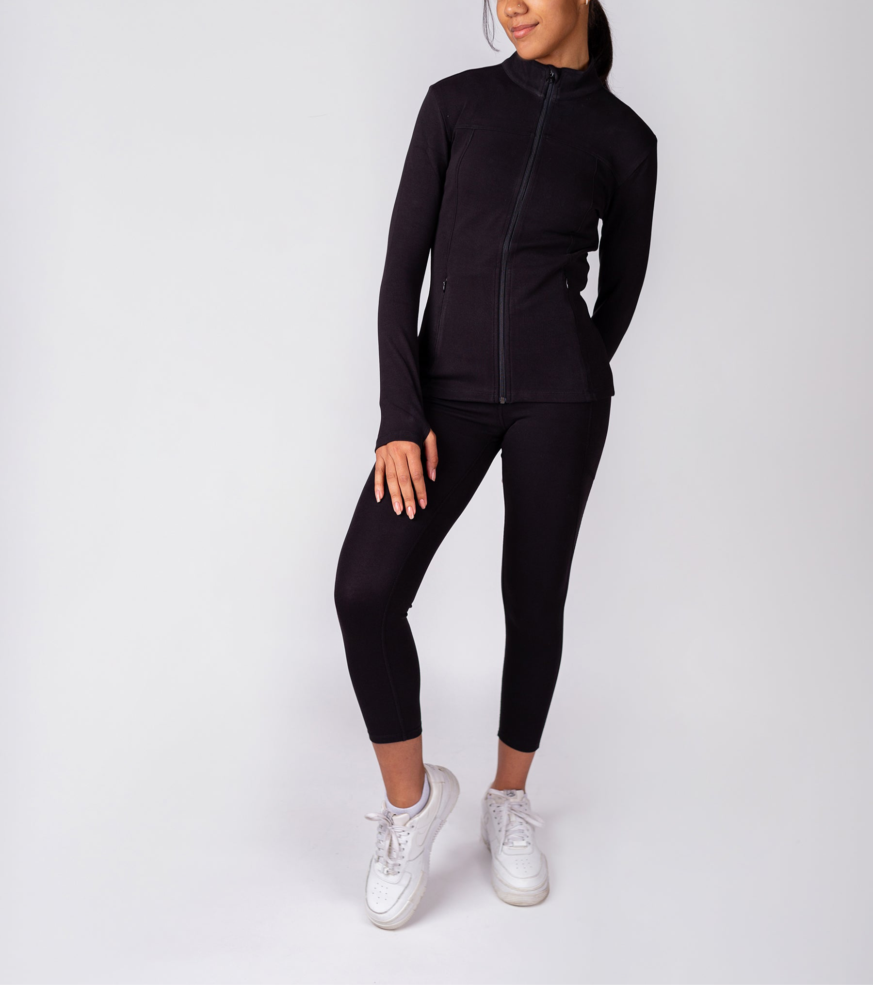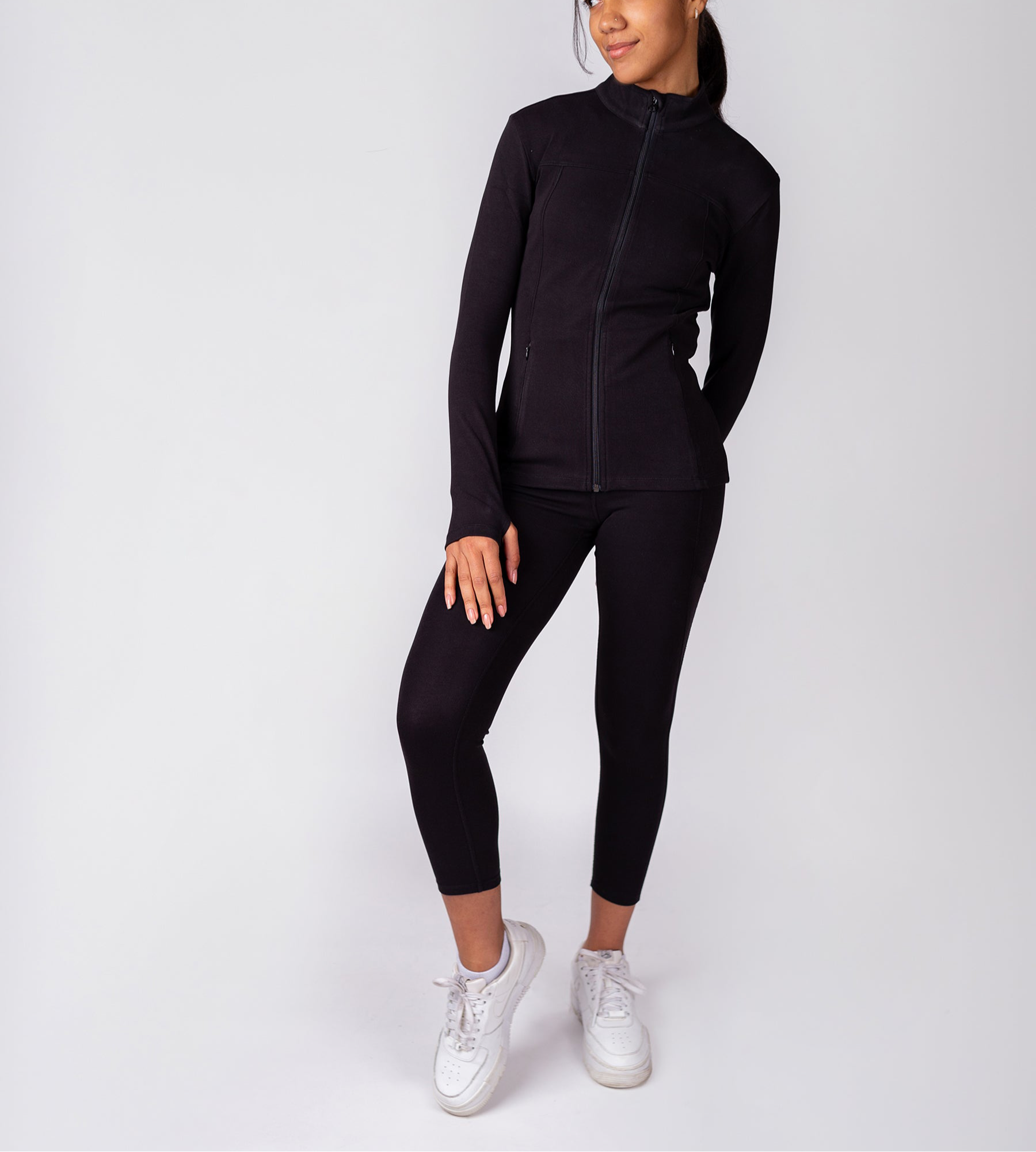 Whether you're working out — or just 𝘸𝘰𝘳𝘬𝘪𝘯'. This waist-snatching jacket does more than flatter the figure. Made from our signature ribbed performance fabric, it's designed to effortlessly move with your body. Providing buttery-soft compression, a smooth slimming fit, and sleek contouring details so you can look + feel your best. Trimmed with thumbholes at the cuffs, a collar for brisk breezes, and hidden pockets (both inside + out!) to secure all your essentials.