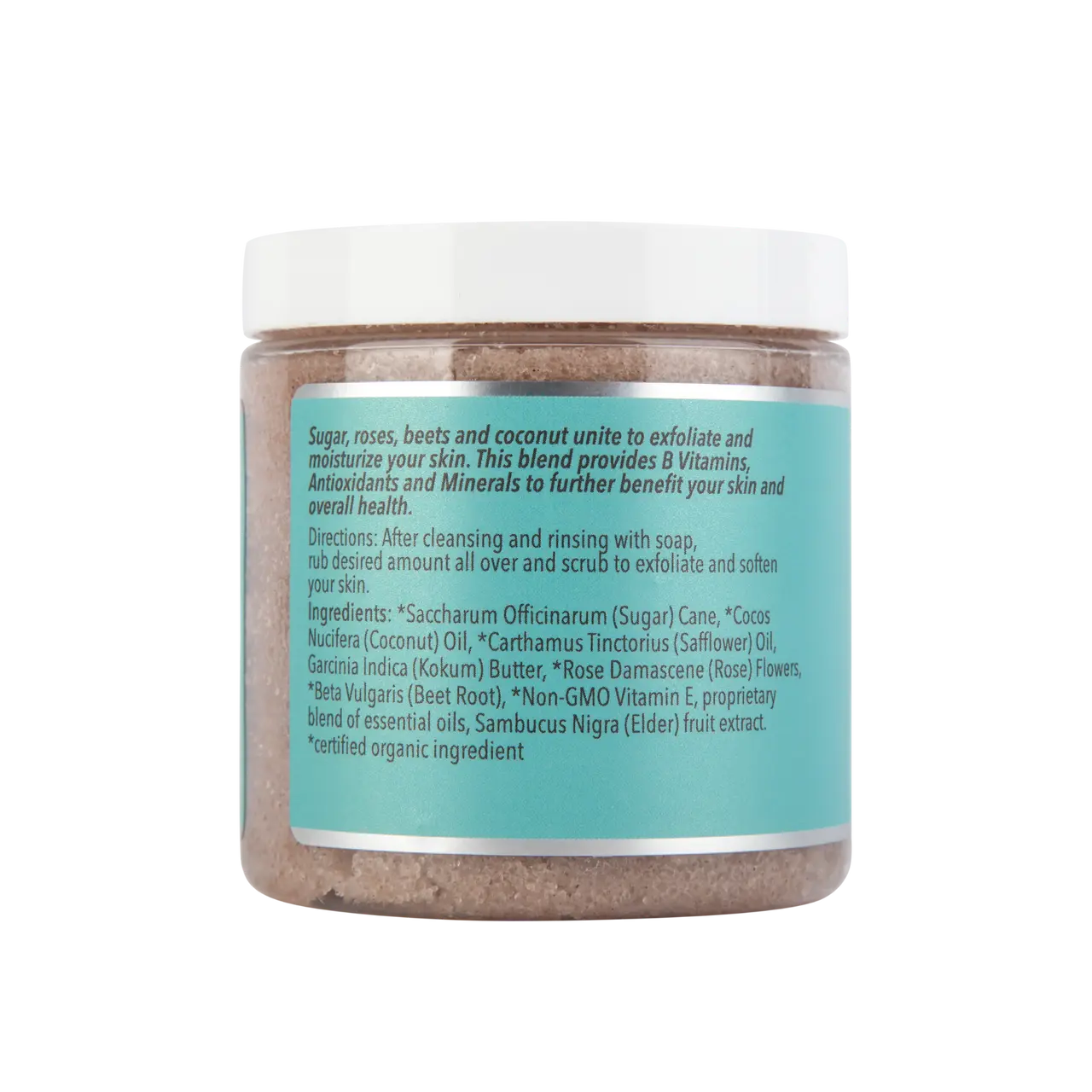 Sugar, roses, beets and coconut unite to exfoliate and moisturize your skin. This blend provides B vitamins, Antioxidants and Minerals to further benefit your skin and overall health.