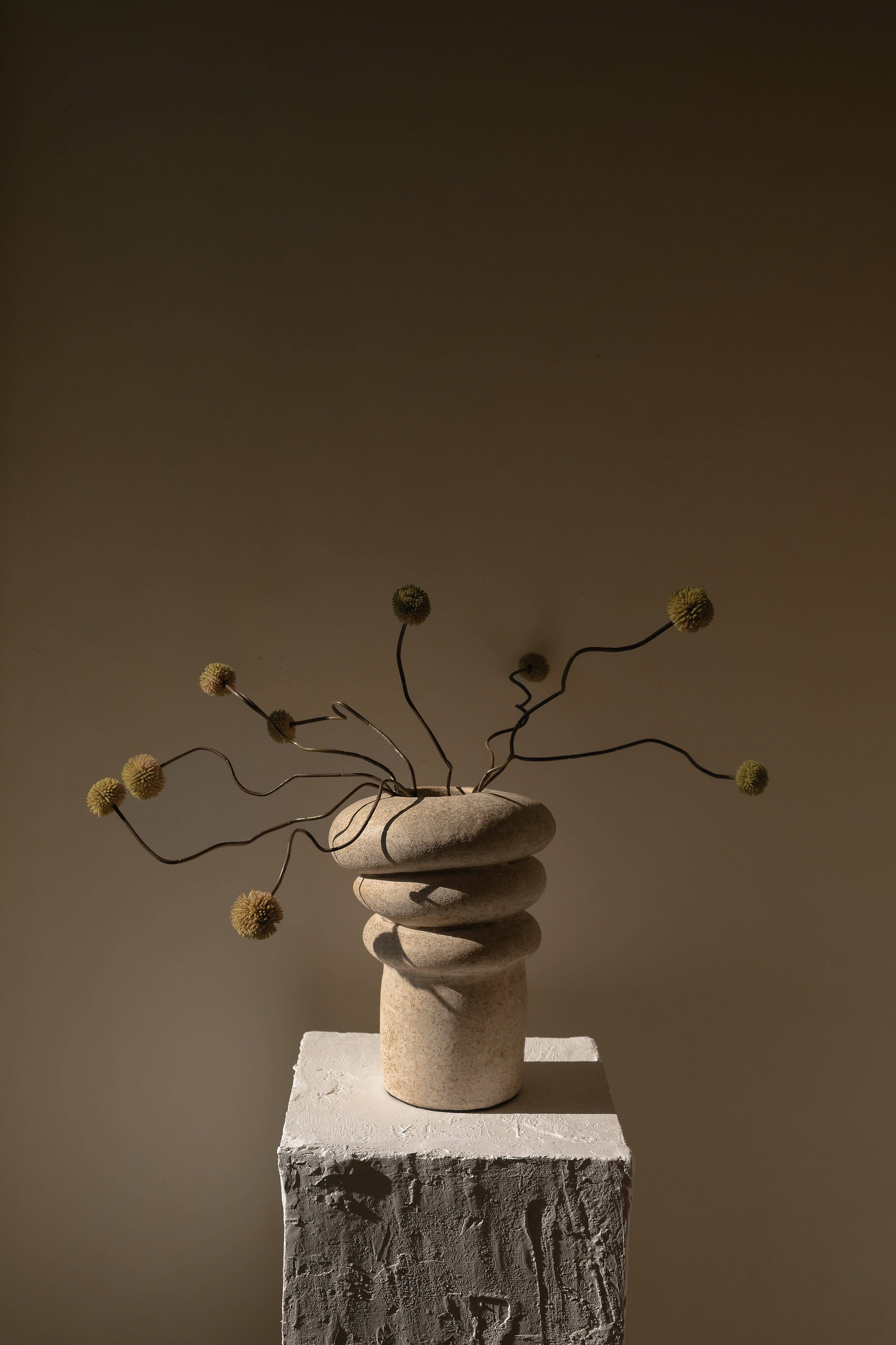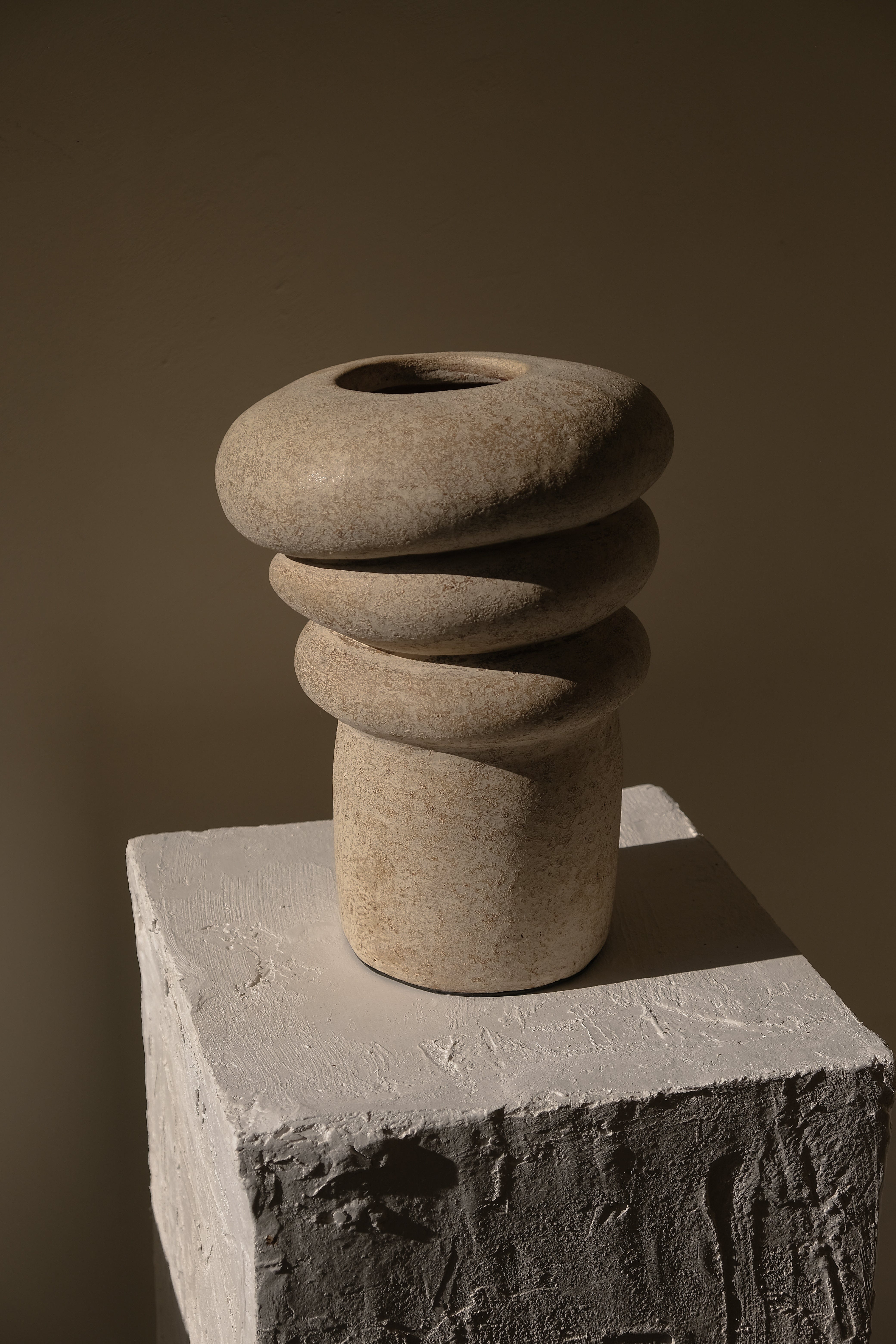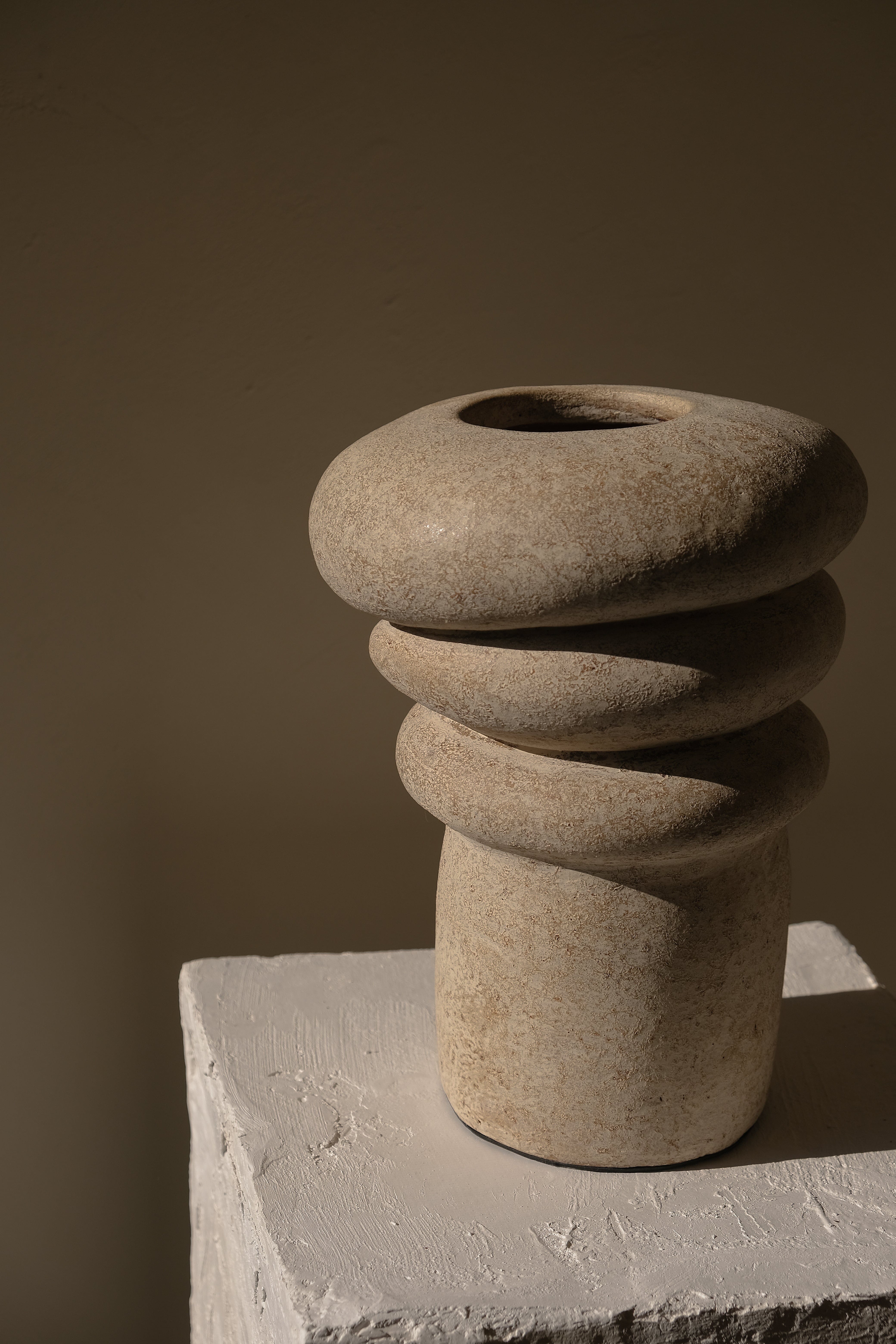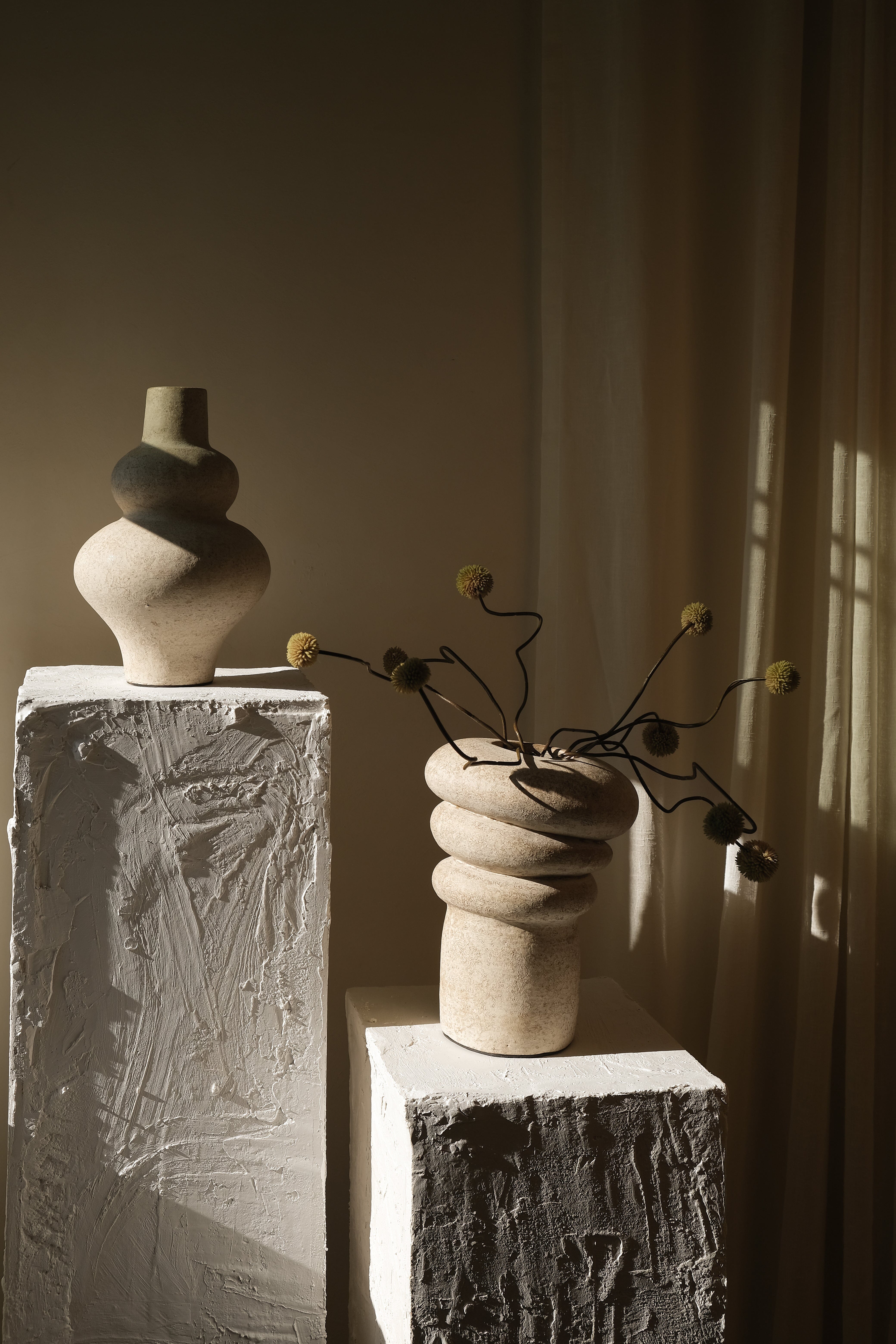 The Sari vessel is an alluring terracotta sculpture handmade by local Indonesian artisans. Inspired by the composition of the Borobodur temple, the piece's multiple stacked layers are reminiscent of the temple steps. Crafted using a technique passed from multiple generations, this piece also has an oblique form and a vintage inspired finish that adds to its distinctive features. This multifunctional piece can hold various fresh blooms as a flower vase or as a decorative standalone piece. Add personality and character to your living spaces with the beautiful Budur vessel.