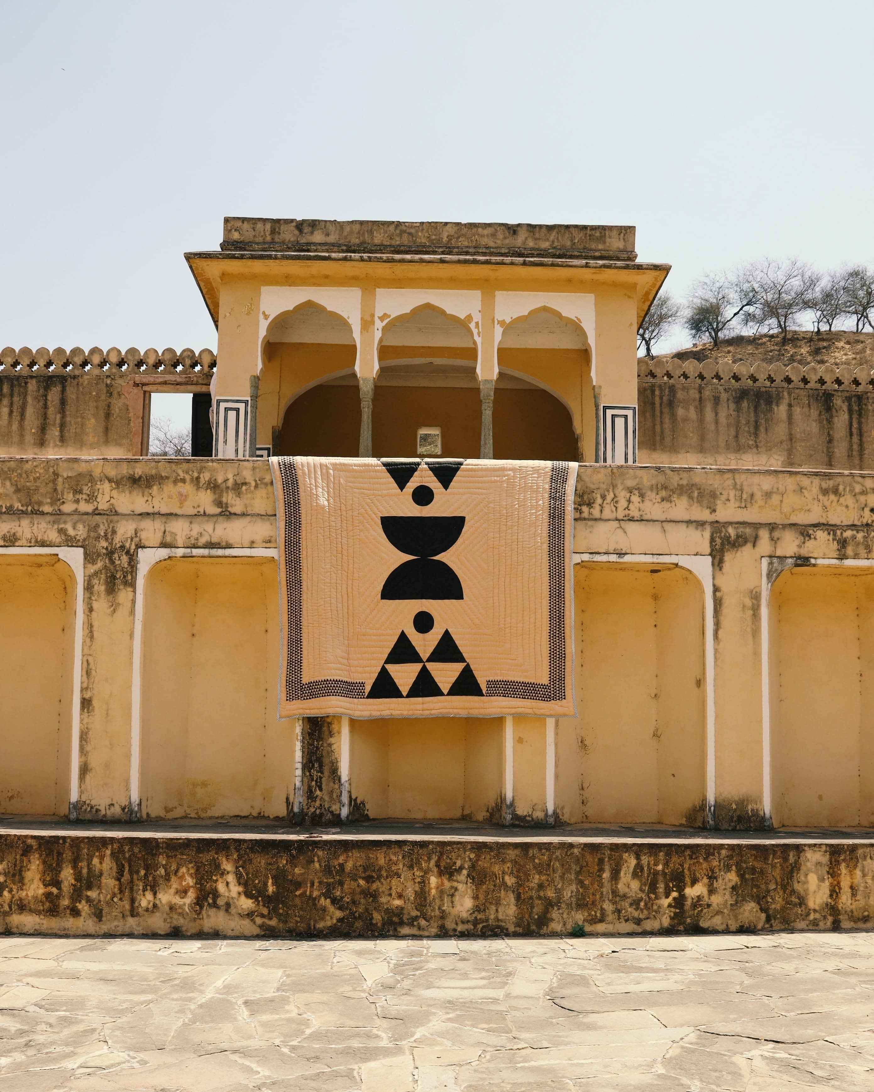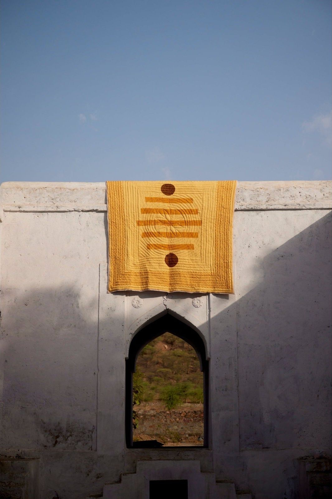 The design is hand-pressed onto each quilt using hand-carved wooden blocks dipped in dyes. The printed cotton shells are brought to the homes of quiltmakers, who stuff and stitch the quilts by hand, creating the final product.