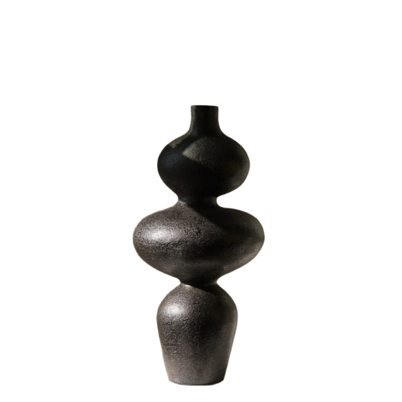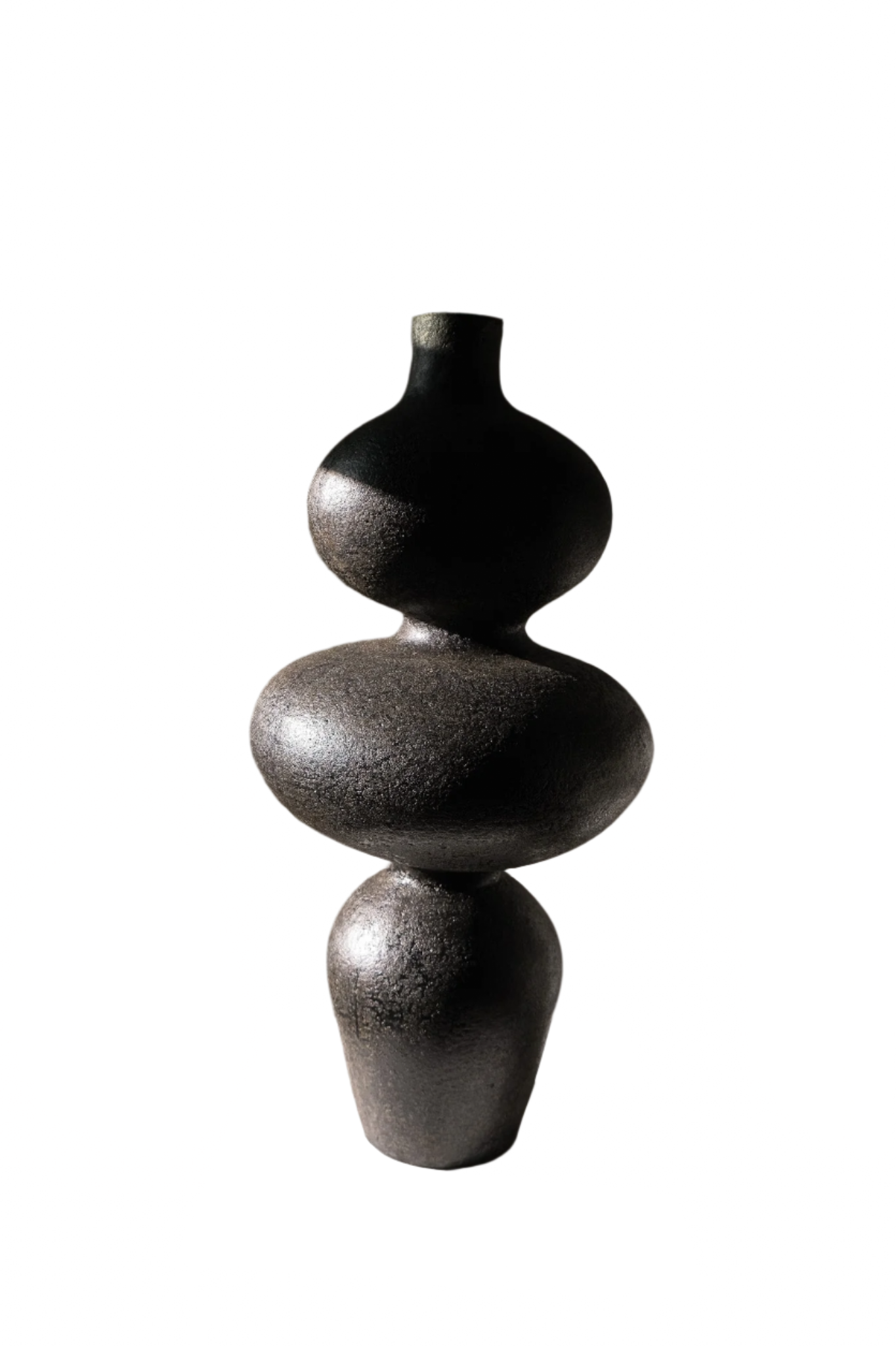 The Sewu vessel is a mesmerizing terracotta sculpture handmade by local Indonesian artisans. A more abstract take on sculptural shapes, this piece takes inspiration from the crown of the Sewu temple featuring curvaceous layers that taper along the middle and at the top. Its striking dark color and textured vintage finish adds to its unique features. Use it as an eye-catching decorative vase for florals or as a standalone decorative piece that adds vivid contrast to both traditional and contemporary spaces.