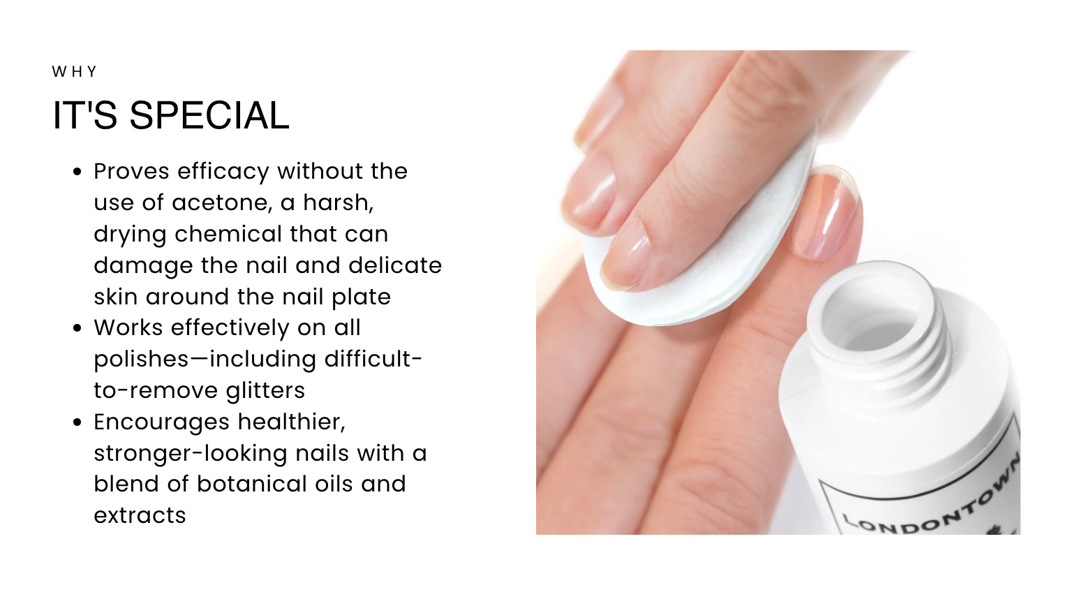 Made to hydrate and remove all polish. Stop drying out your nails with other removers! Give your nails the good stuff with our Strengthening Lacquer Remover, made to hydrate and remove all polish - even stubborn glitter!