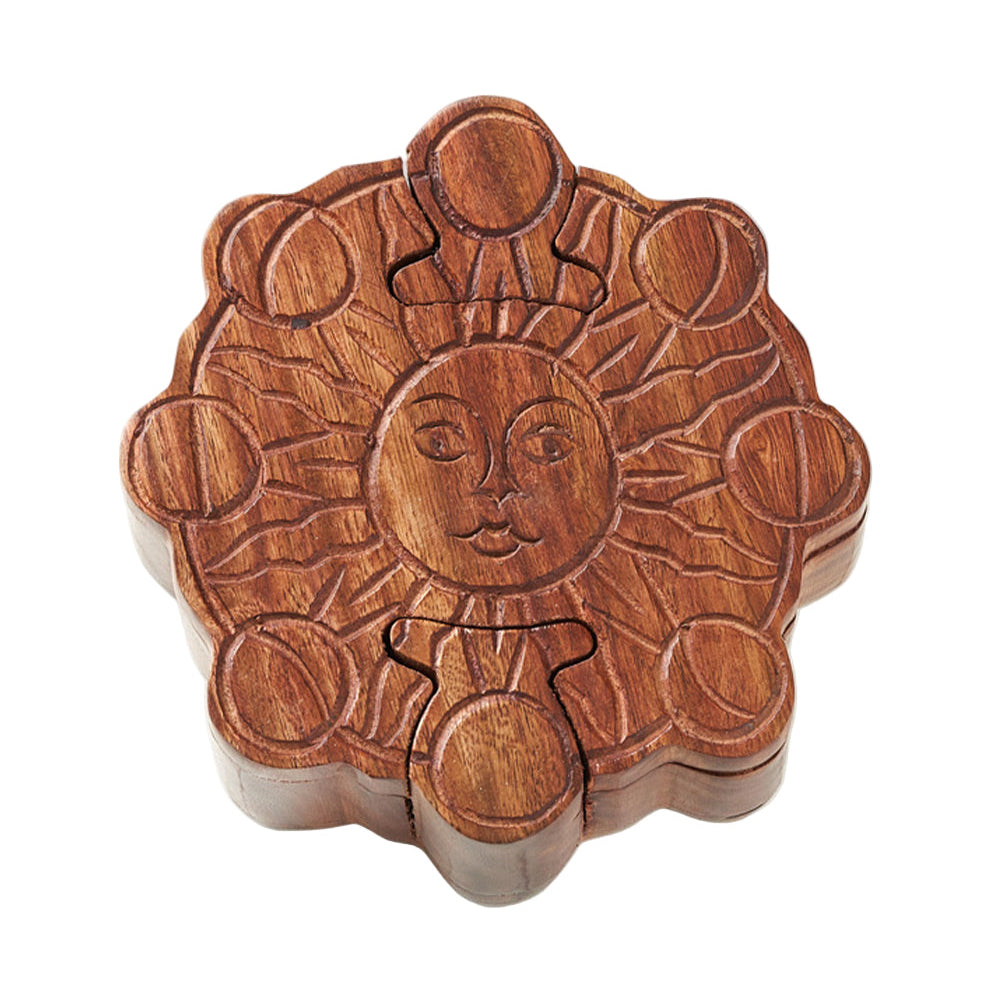 Sun and Moon Phase Puzzle Box - Handcrafted Sheesham Wood