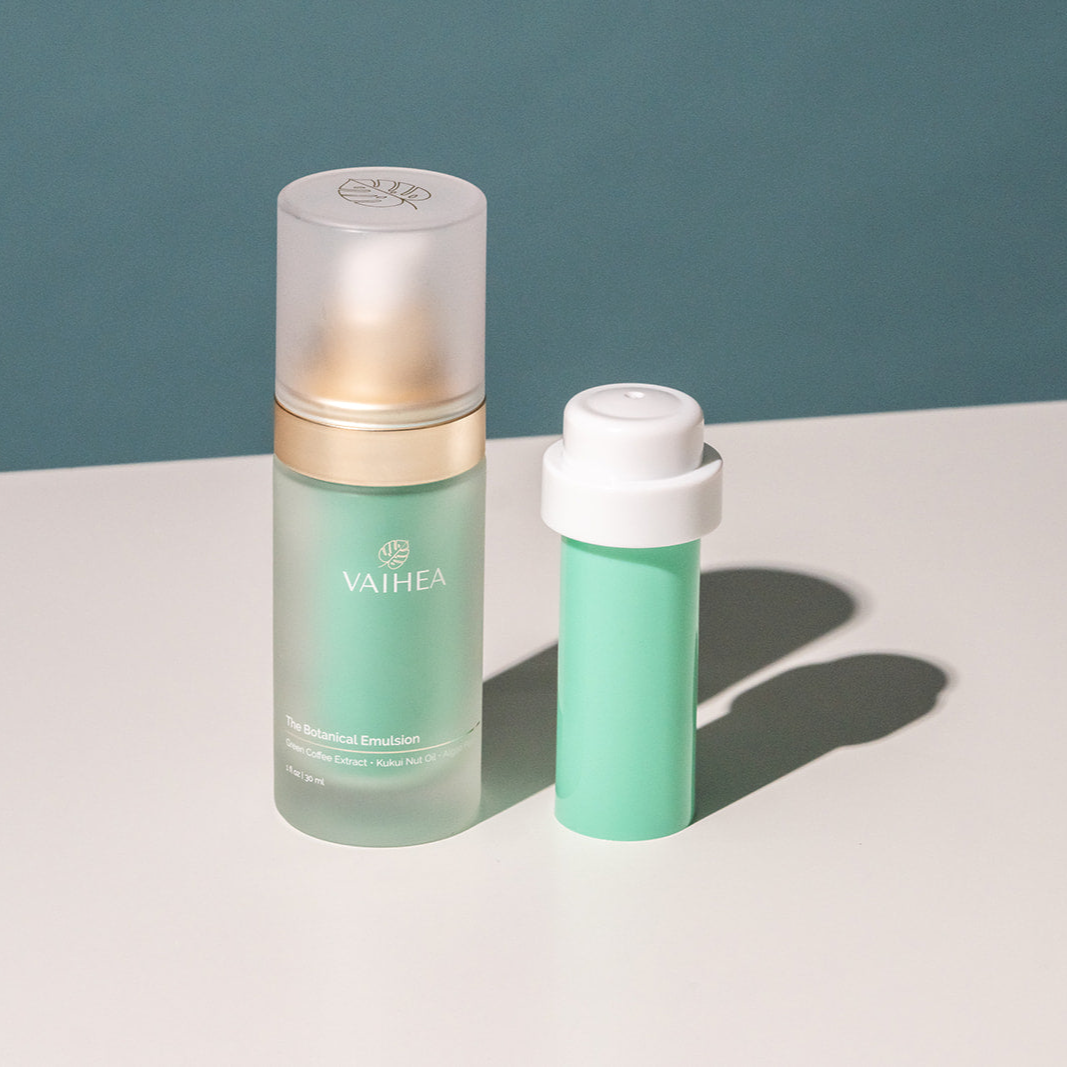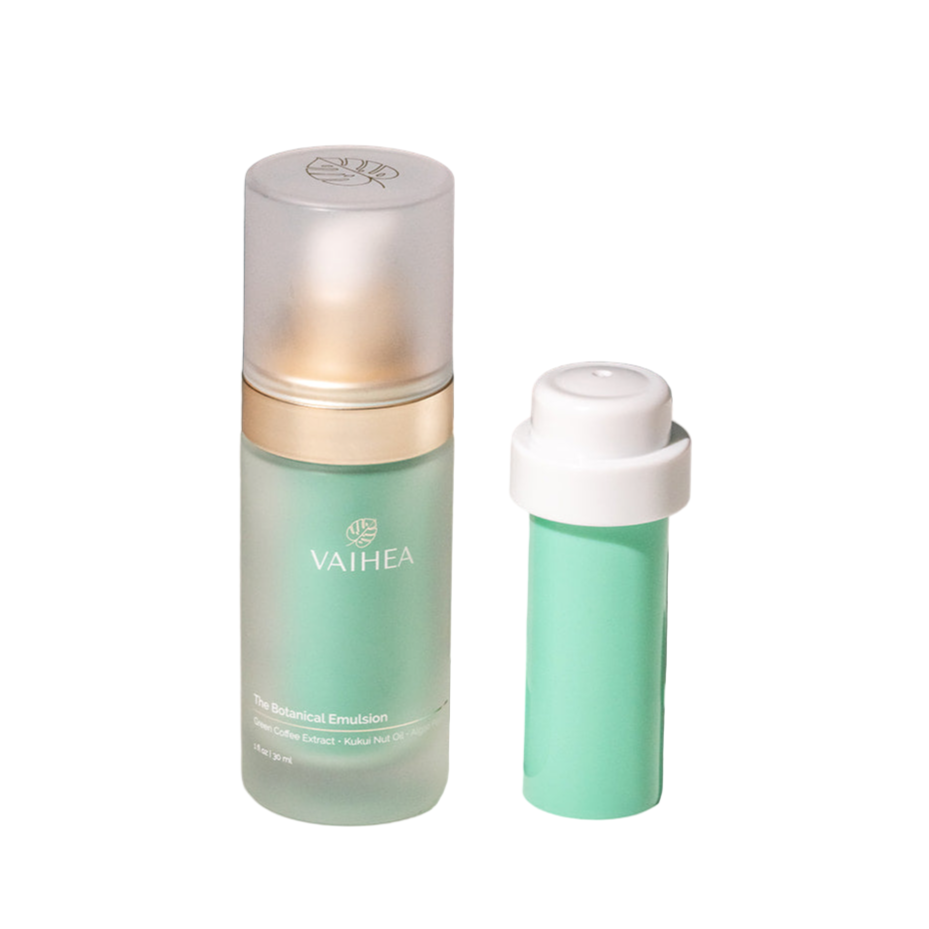 The Botanical Emulsion is a luxurious blend of Polynesian botanical extracts specially formulated to hydrate and renew the complexion. The addition of green coffee extract and algae peptides promote collagen production and aid against environmental damage, leaving a more radiant appearance. This product includes refillable bottles and is always vegan.