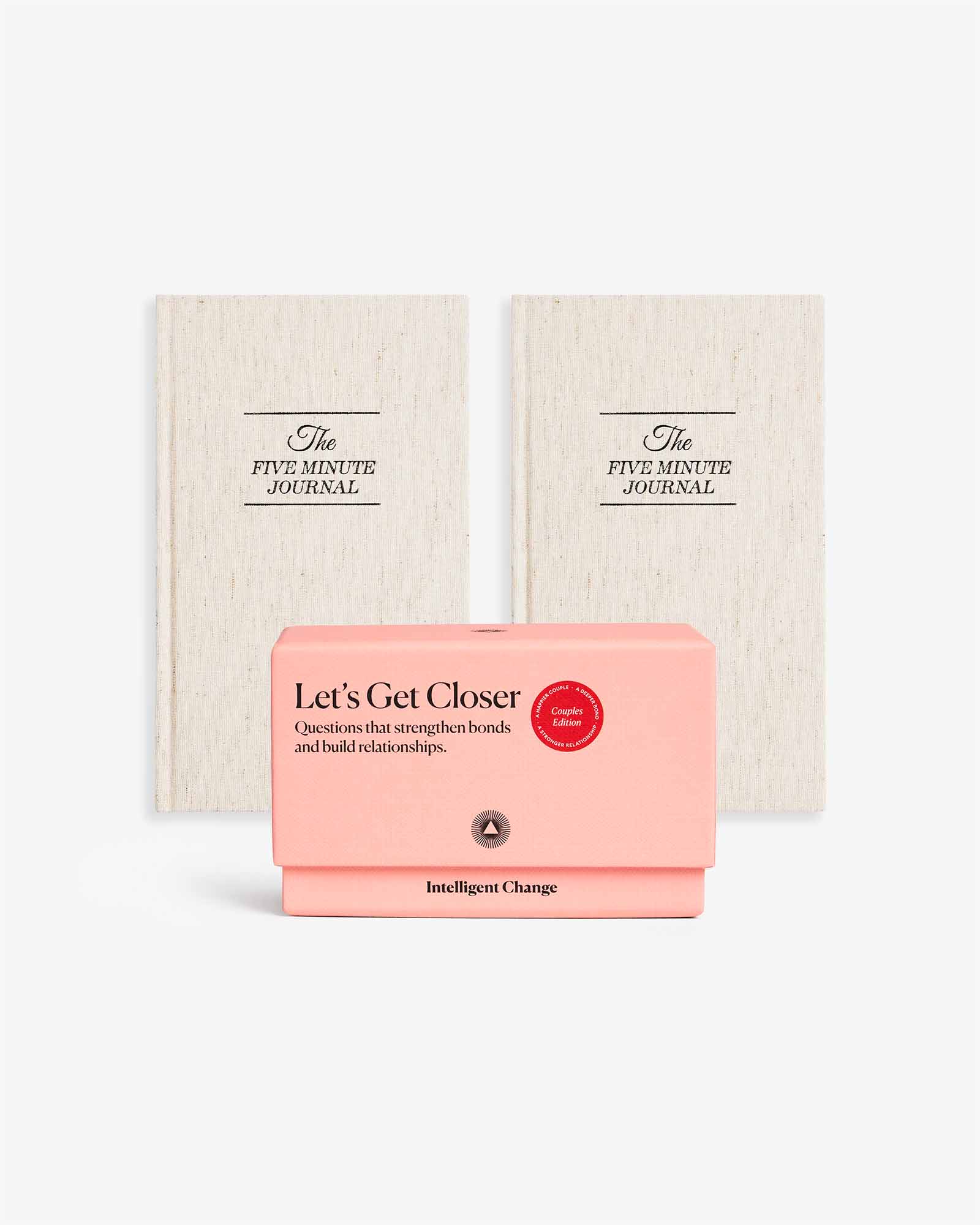 This bundle includes two (2) Five Minute Journals and the Let’s Get Closer Couples Edition game.