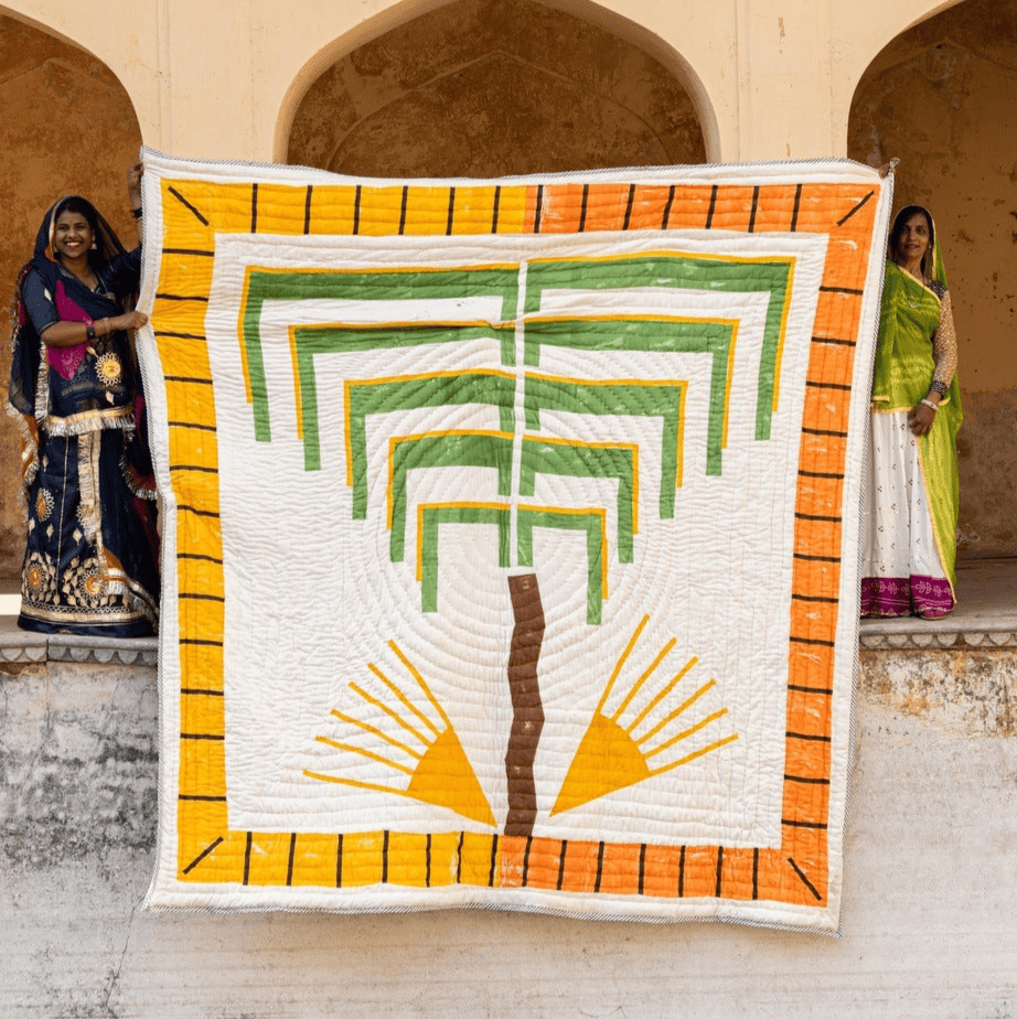 Each quilt is handmade, requiring attention from 4 different artisans, including wood carvers, block printers, quiltmakers, and dye specialists.