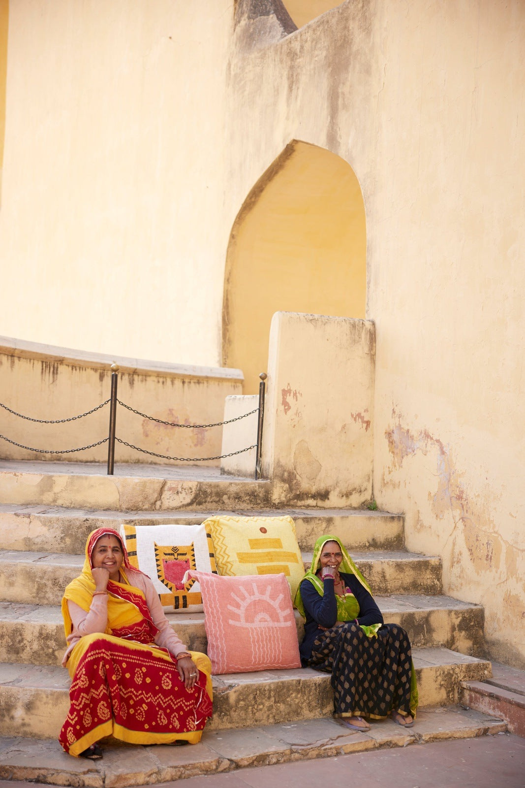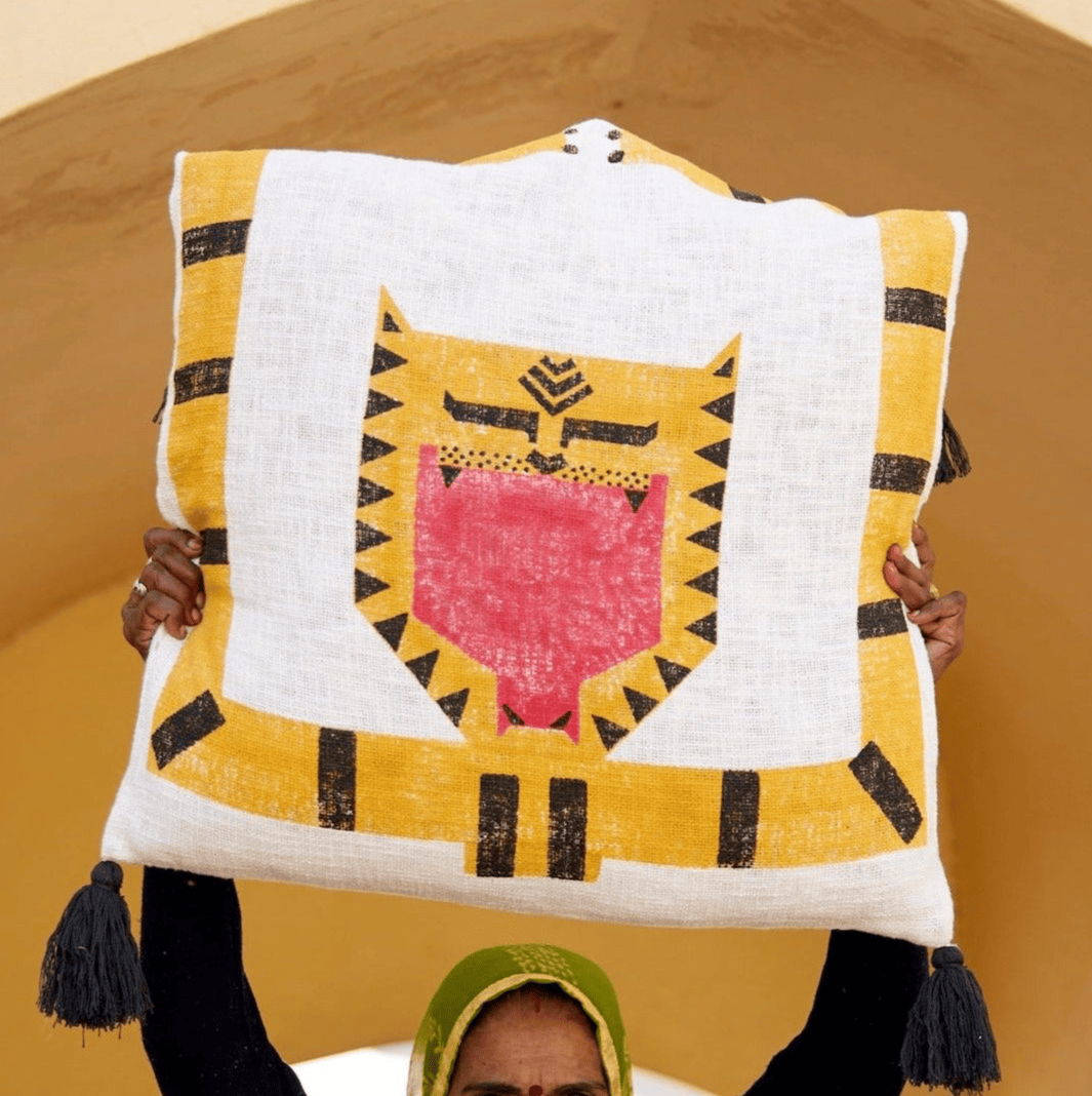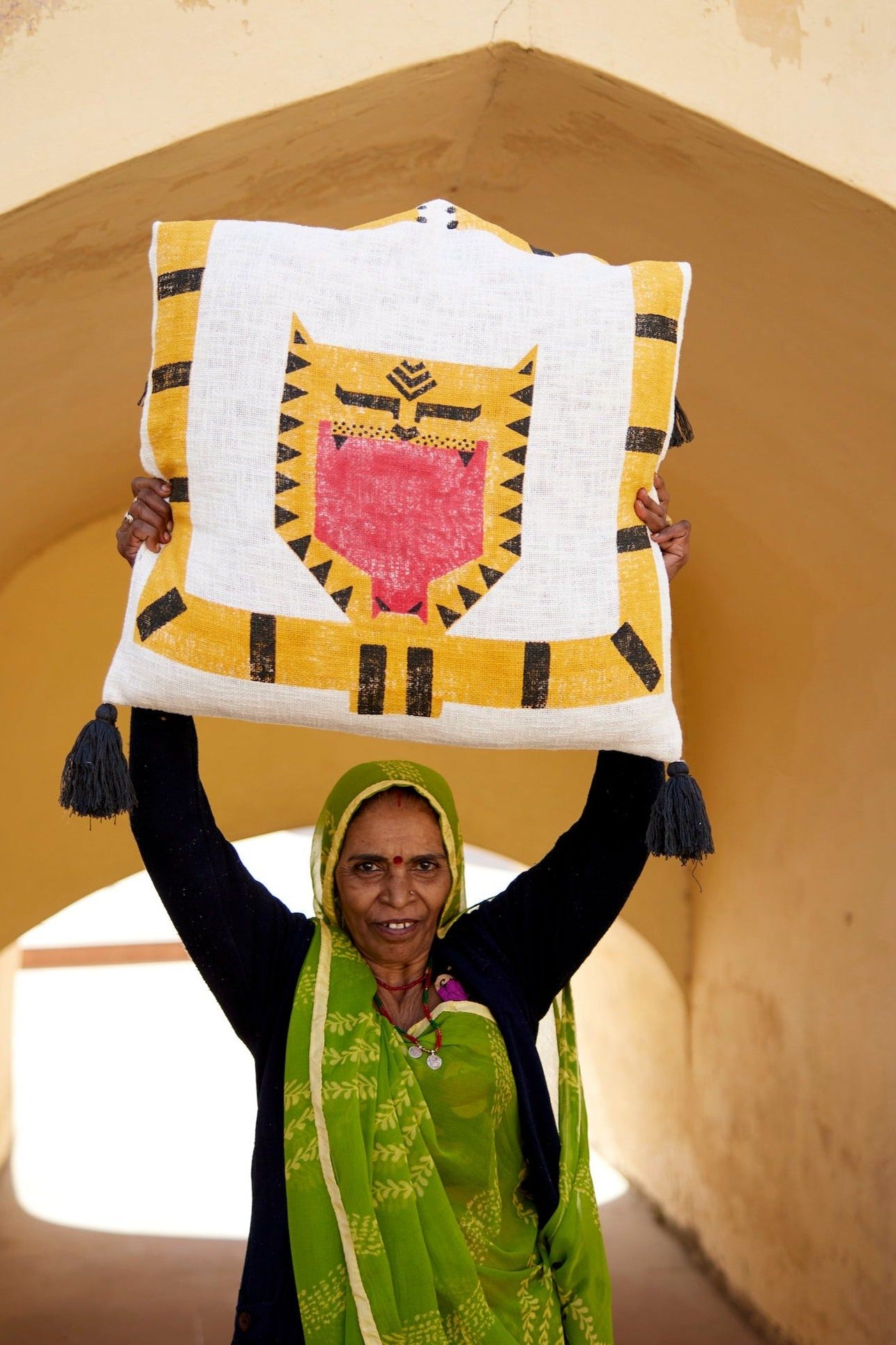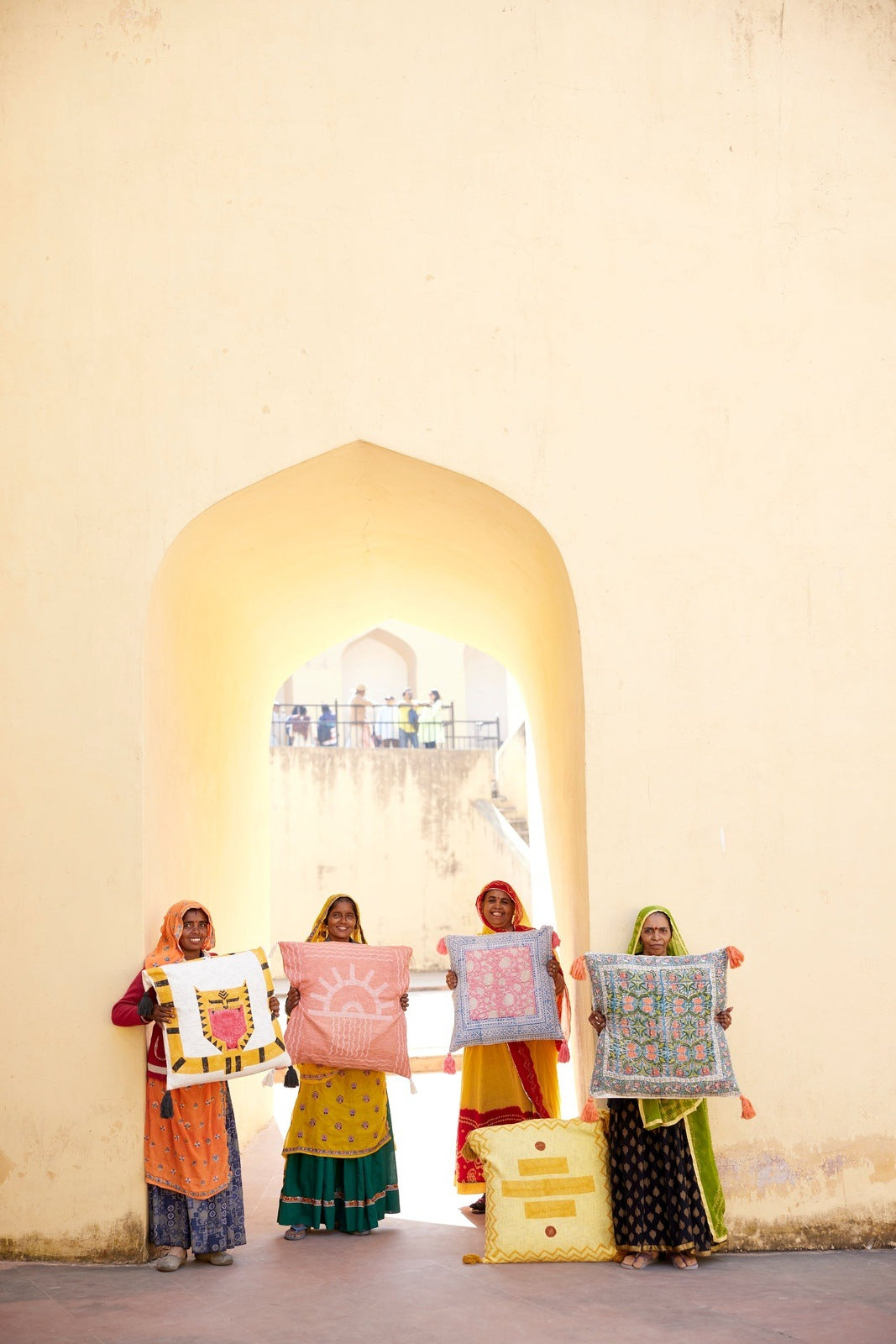 Each pillow sham is handmade, requiring attention from 4 artisans, including wood-block carvers, hand-printers, sewists, and dye specialists.