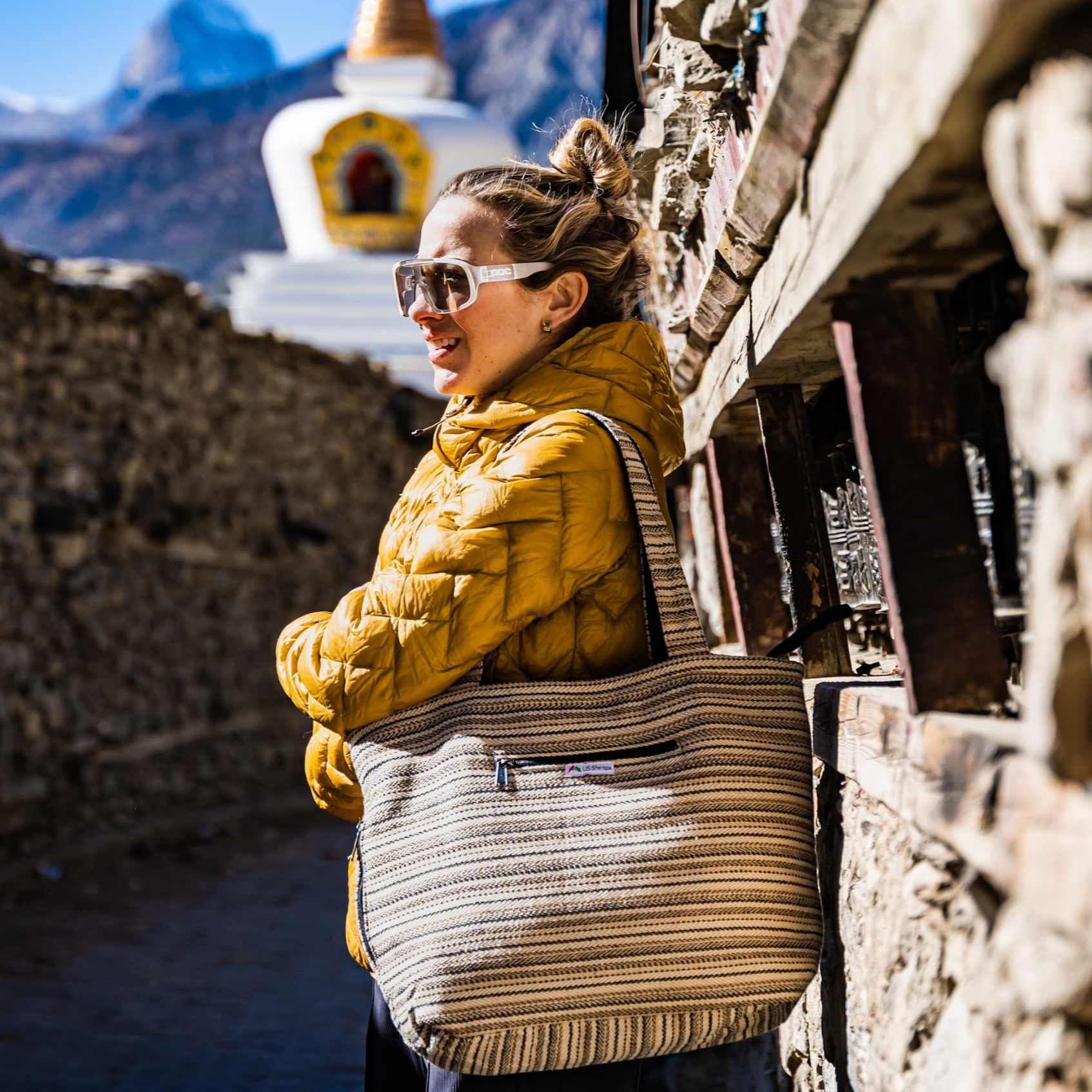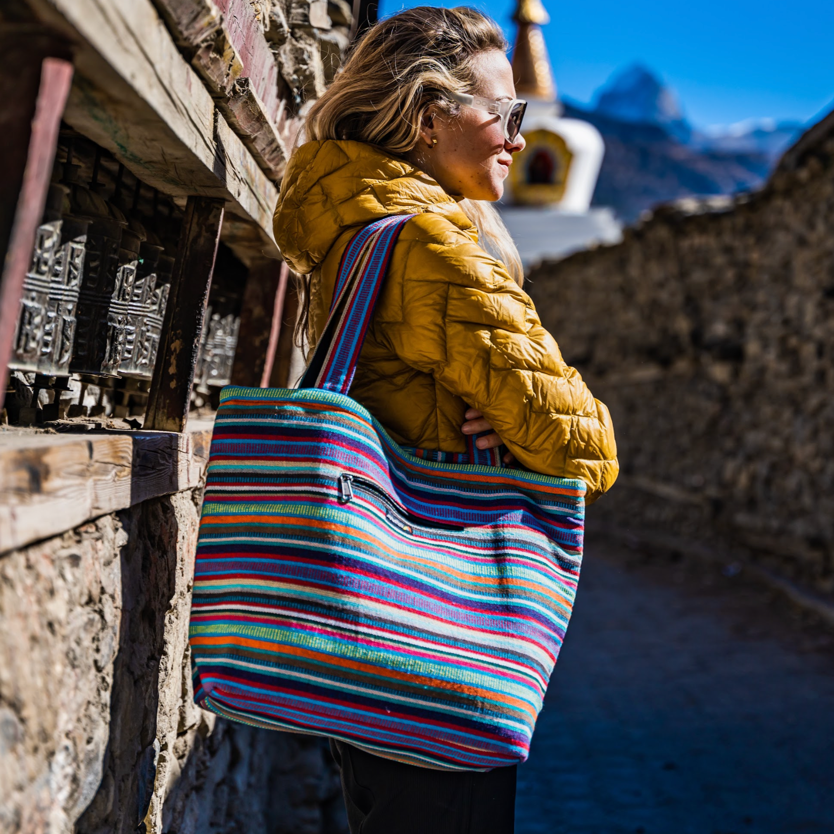 Our Rungi Chungi Tote Bag is a classic, do-it-all tote made of 100% gheri cotton, thoughtfully crafted for everyday versatility and travel-ready durability. With ample space for your essentials, it features both an interior and exterior zip-pocket to keep valuables secure and organized, sturdy two-handles for comfortable carry, and a reliable zip-closure to keep everything in place on the go.