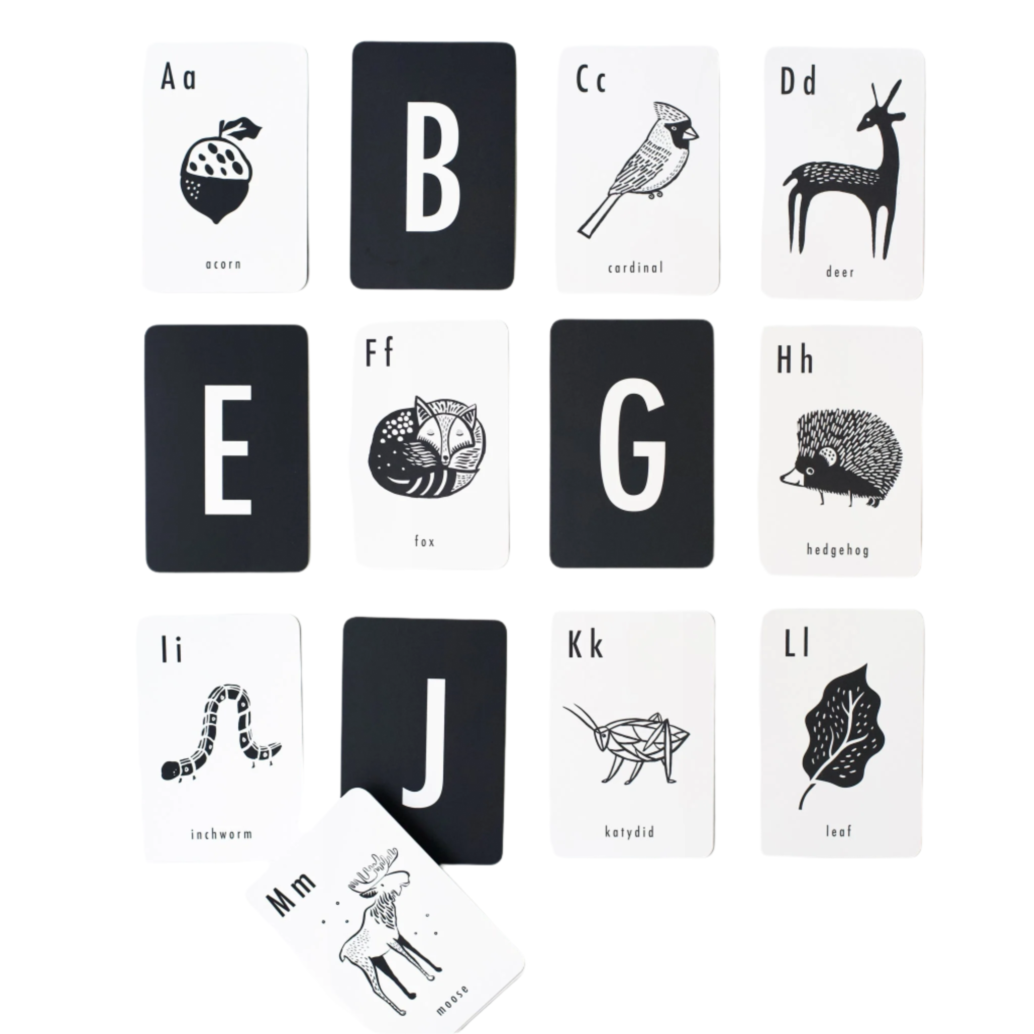 The Woodland Alphabet Cards are the perfect gift for newborn baby, toddler, or preschool age kids. Designed to aid in cognitive brain development, learning, focus, and memory skills - with an artistic touch. The high-contrast animal and nature artwork creates a mesmerizing sensory display for babies, while the bold letters create a delightful alphabet learning experience for older children and can be used as flashcards when reading skills begin.
