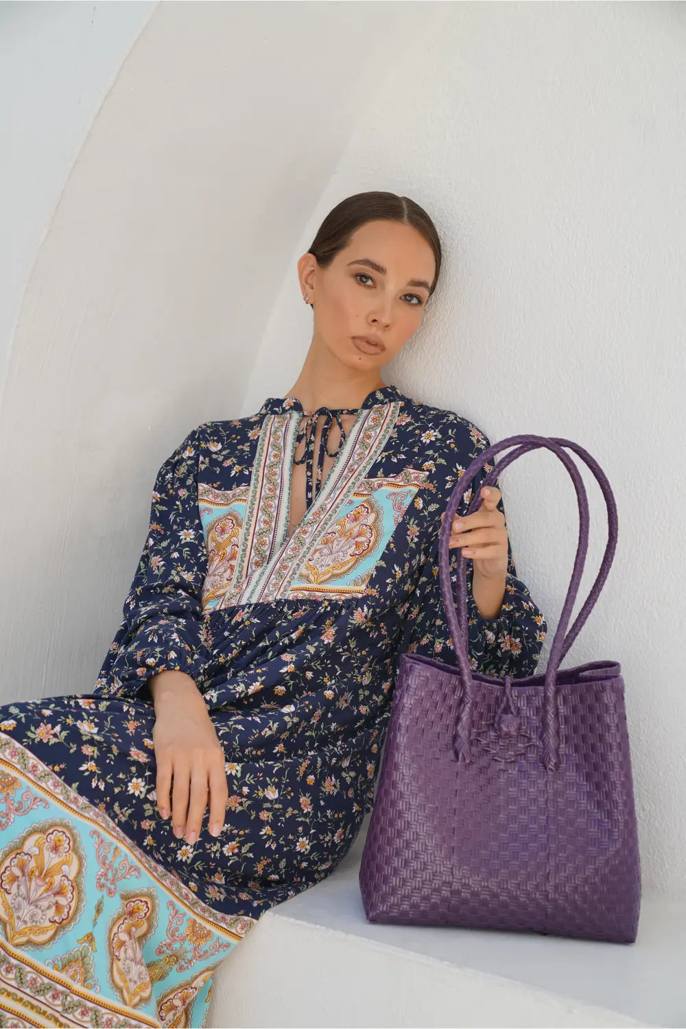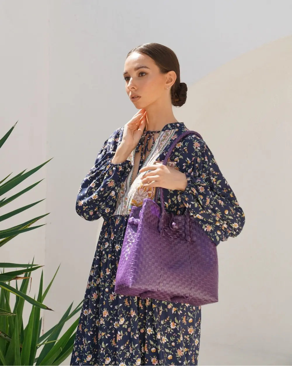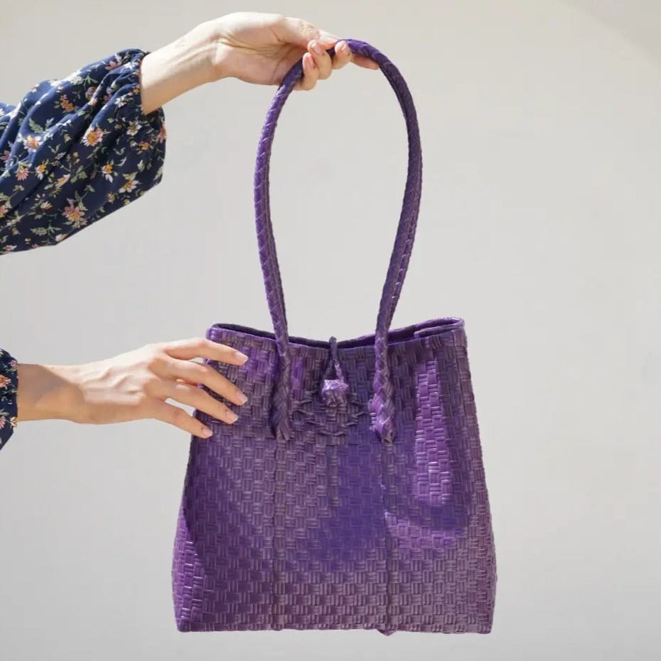 You don’t have to give up style for sustainability. Our highly curated, ethically sourced selection of accessories create lots of goodness. Your purchases at Sumiye Co help empower vulnerable communities around the world while being kind to the earth. This bag is artfully hand woven from recycled plastic in practice with our zero waste initiative, to help reuse and repurpose. It's a perfect bag to use in any occasion to match your outfit.